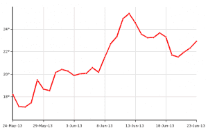 Los sistemas que vamos a estudiar se llaman sistemas dinámicos puesto que sus salidas dependen de entradas y/o salidas anteriores. Como en el siguiente ejemplo, se trata de un histórico de las temperaturas medias durante el último mes en València. La predicción del tiempo implica un sistema extremadamente complejo que estudia la ingeniería de sistemas en combinación con otras áreas como al meteorología y la física.