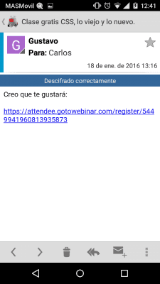 Y finalmente tenemos el correo descifrado en nuestro móvil.